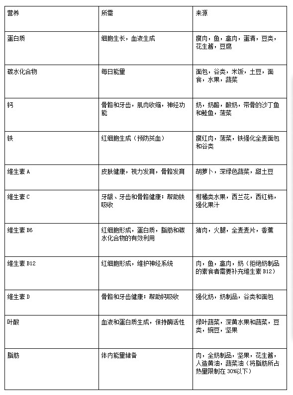 下面是最常见的所需营养,以及哪些食物含有它们: